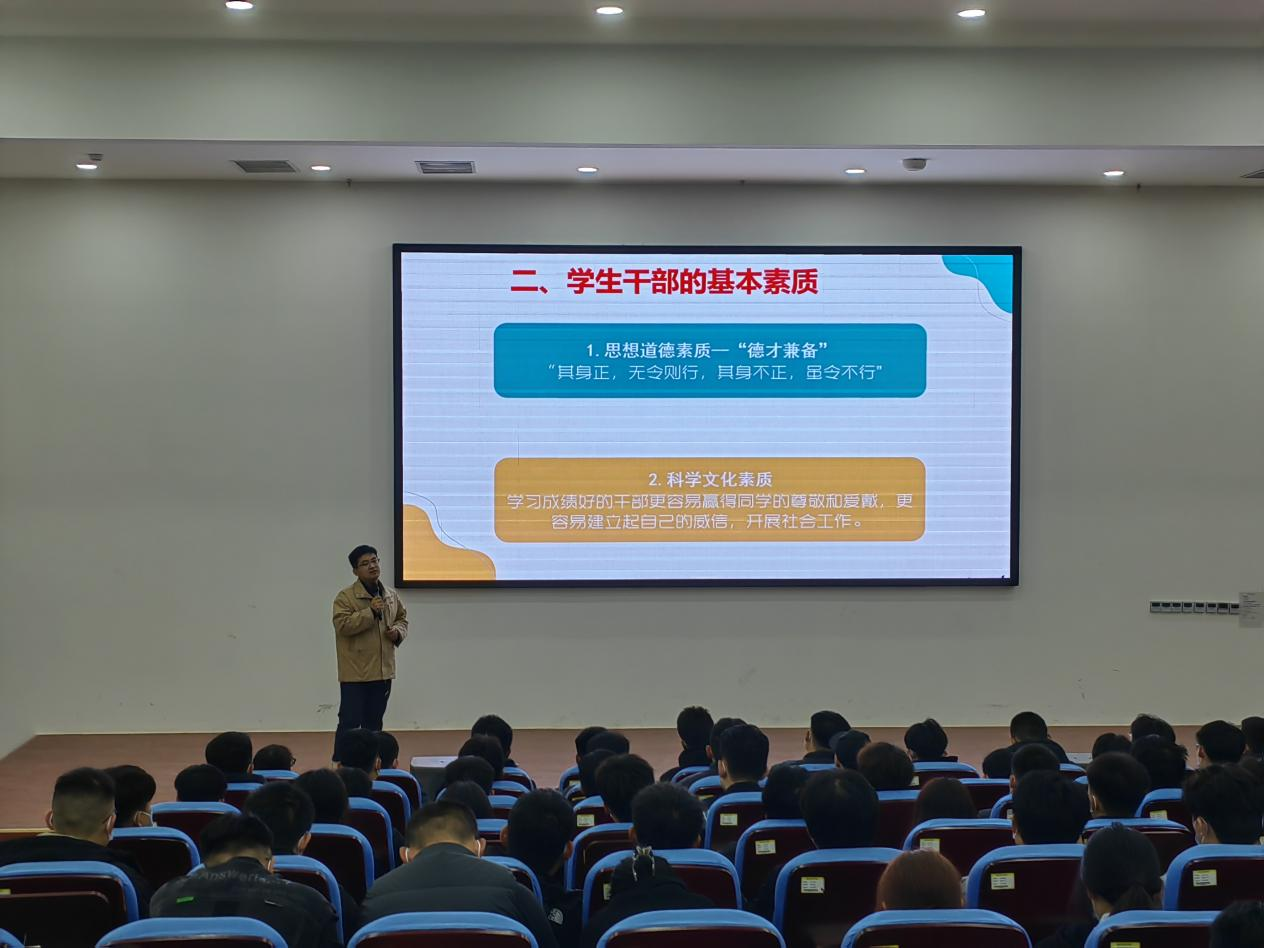 为提升学生干部管理服务水平,增强队伍凝聚力和协作力。3月22日,智能制造学院组织召开“以智慧塑造形象,修炼提高凝聚力”学生干部培训会,学院团总支书记李明主讲,学院全体学生干部参加。